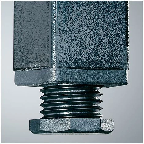Piétement robuste en tube d’acier 50 x 30 x 1,5 mm et 30 x 30 x 2 mm. Peinture époxy noir profond RAL 9005.Pieds en plastique réglables en hauteur pour compenser les sols irréguliers.