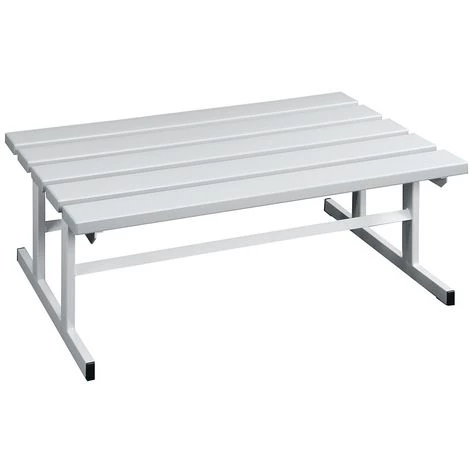 Nombre de lattes: 5, Hauteur h.t.: 400 mm, Profondeur h.t.: 630 mm, Poids: 20 kg, longueur: 1000 mm, Assise: beidseitig, Hauteur d’assise: 400 mm, Profondeur assise: 630 mm, Livraison: Monté, Coloris piétement: Gris clair, similaire à RAL 7035, Matériau du piétement: Tube carré, Prix par: Pièce, Coloris assise: gris clair similaire à ral 7035