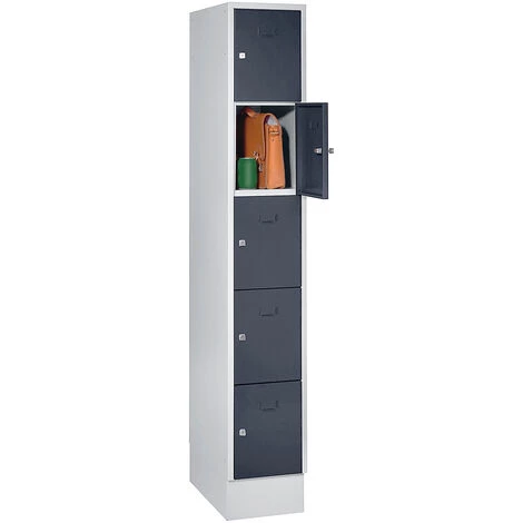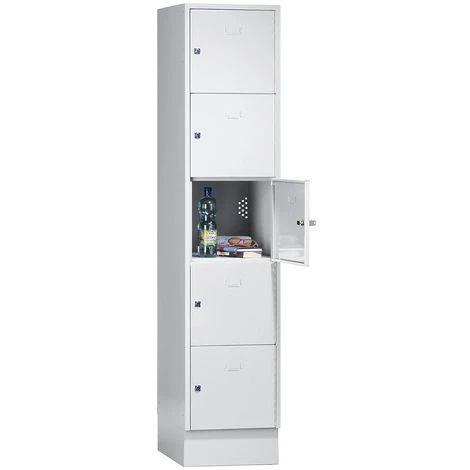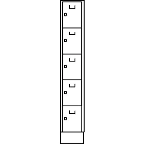 Largeur compartiment: 300 mm, Nombre de casiers: 5, Largeur: 300 mm, Hauteur d’étagère: 320 mm, Largeur casiers: 298 mm, Profondeur casier: 475 mm, Hauteur: 1850 mm, Hauteur du socle: 150 mm, Prix échelonné à partir de: 1 pièces, Tablette clavier: 0, Profondeur: 500 mm, Livraison: Monté, Structure: Soudé, Coloris corps: gris clair, Matériau: Tôle d’acier thermolaquée, Prix par: Pièce, Type de porte: Portes pleines, Coloris des portes: Gris argenté RAL 7001, Verrouillage: Serrure à double panneton avec 2 clés