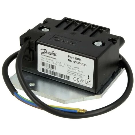 Pour:NU-1-17-25, NU-1-32/40, NU-1-50, HU-3-22-29, HU-3-37, HU-3-45Caractéristiques techniques:Durée de mise en service: 33 %Primaire: 230 VTension secondaire: 15 KvCourant secondaire: 40 mARaccordement secondaire: 2 x 4 mmIndication:Type: EBI4 052F4030