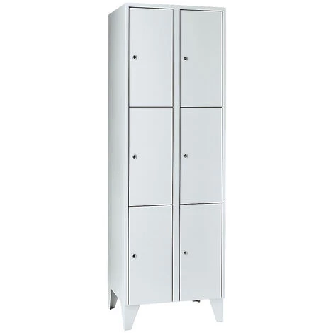 Largeur compartiment: 300 mm, Nombre de compartiments: 2, Nombre de casiers: 6, Largeur: 600 mm, Hauteur d’étagère: 530 mm, Largeur casiers: 298 mm, Profondeur casier: 475 mm, Hauteur piétement: 150 mm, Hauteur: 1850 mm, Prix échelonné à partir de: 1 pièces, Tablette clavier: 0, Profondeur: 500 mm, Livraison: Monté, Type de piétement pour vestiaire: Avec 4 pieds à crampons, Equipement intérieur: Sans aménagement, Structure: Soudée par points, Coloris corps: gris clair, Matériau: Tôle d’acier, Surface: Enduit, Prix par: Pièce, Type de porte: Portes pleines, Coloris des portes: Gris clair, Verrouillage: Serrure à double panneton avec 2 clés