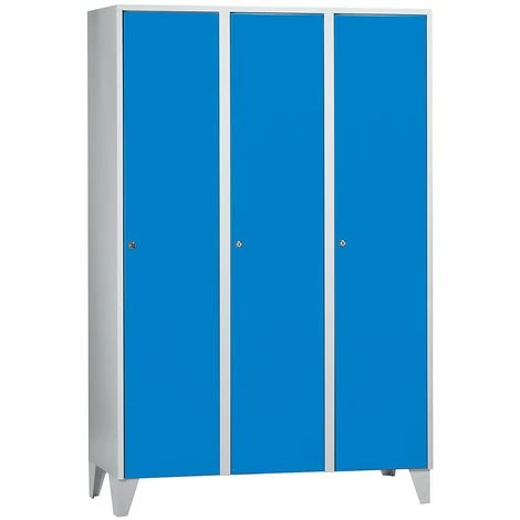 Nombre de casiers: 3, Largeur: 1200 mm, Hauteur d’étagère: 1700 mm, Largeur casiers: 300 mm, Hauteur piétement: 150 mm, Hauteur: 1850 mm, Prix échelonné à partir de: 1 pièces, Tablette clavier: 0, Profondeur: 500 mm, Coloris corps: gris clair, Matériau: Tôle d’acier soudée, Prix par: Pièce, Coloris des portes: Bleu clair RAL 5012, Verrouillage: Serrure à double panneton avec 2 clés